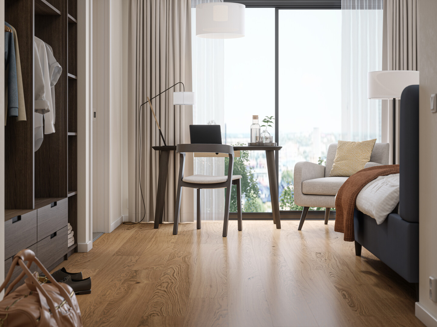 Bjelin XL is an exceptionally durable hardened timber floor empowered by the patented Woodura™ technology, which creates a water and dent resistant surface and makes the panels three times stronger. Together with the leakproof 5G Dry™ floor locking system and the moisture-resistant Compositek wood core, these floors can last for generations. Produced with high-quality, responsibly sourced FSC-certified wood, all raw materials are used optimally, creating a more sustainable wood floor.